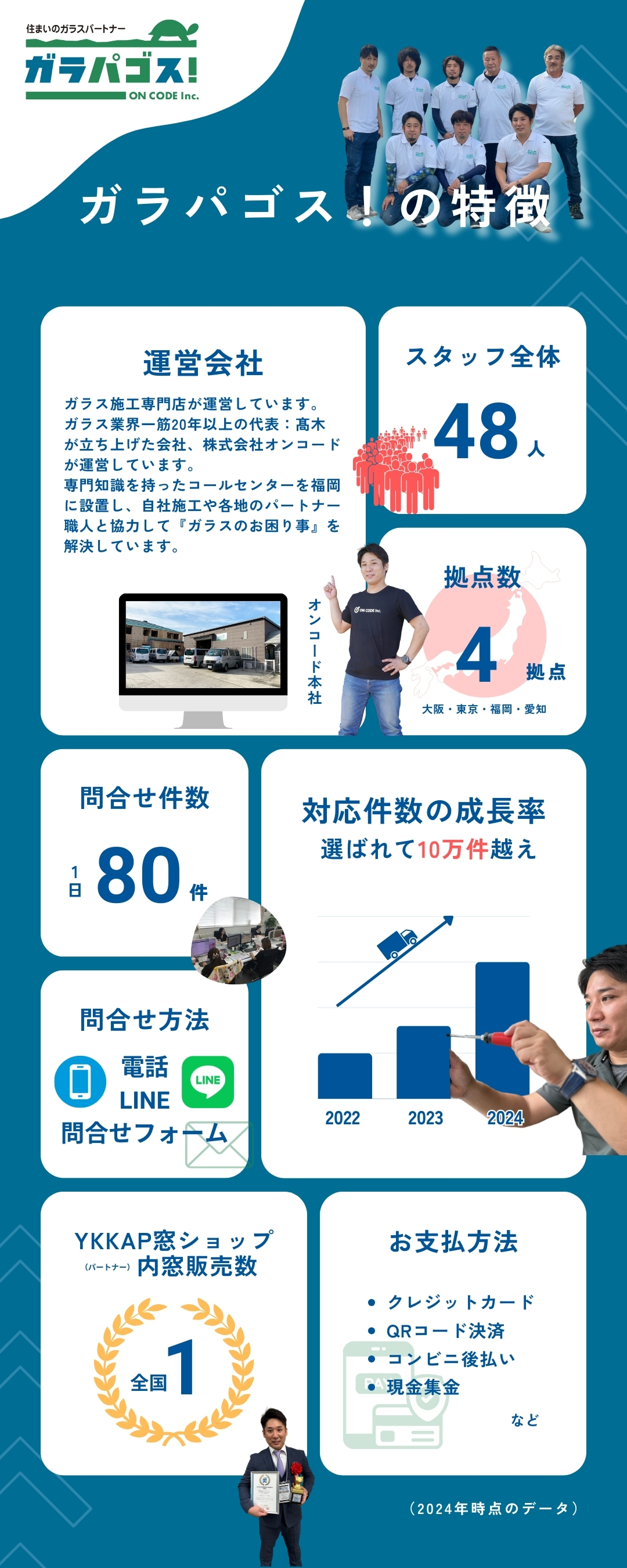 当店をお選び頂いた大阪市住之江区のお客様全員が「ガラパゴス!に依頼して本当に良かった」と思って頂ける様、スタッフ一同、大阪市住之江区にお住まいのお客様一人一人、ガラス一枚一枚に対し、感謝の気持ちと責任を持って、今まで培った経験・知識・技術で精一杯の対応をさせて頂きます!
