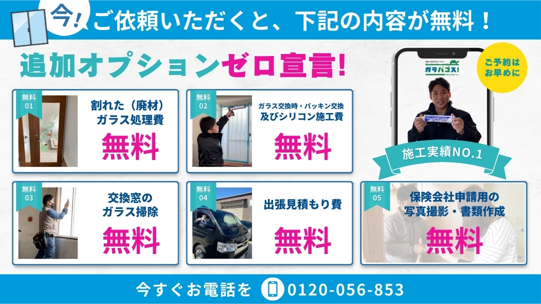 (当店のガラス交換料金は、ガラス代・交換施工費・出張費・副資材費など全てを含んだコミコミ価格で記載しています。)